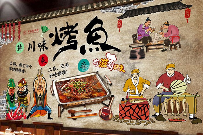 火鍋店民俗墻繪